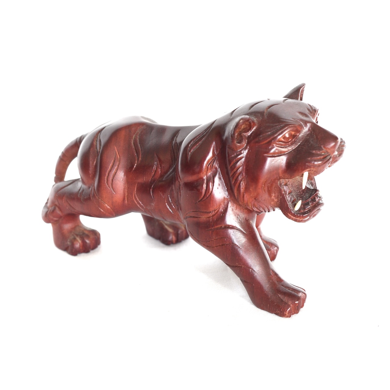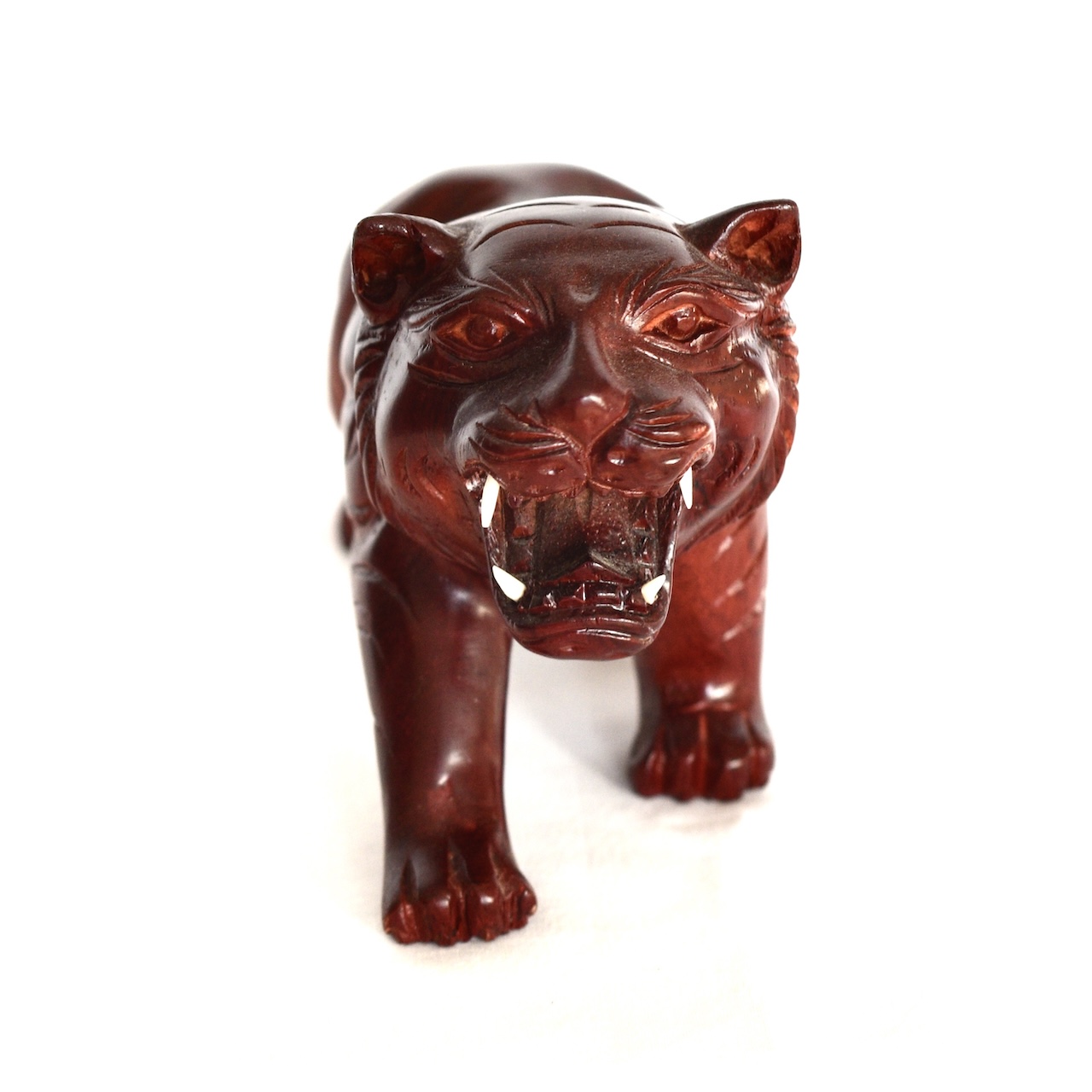 Hand Carved Ferocious Wooden Tiger With Sharp Teeth quantity