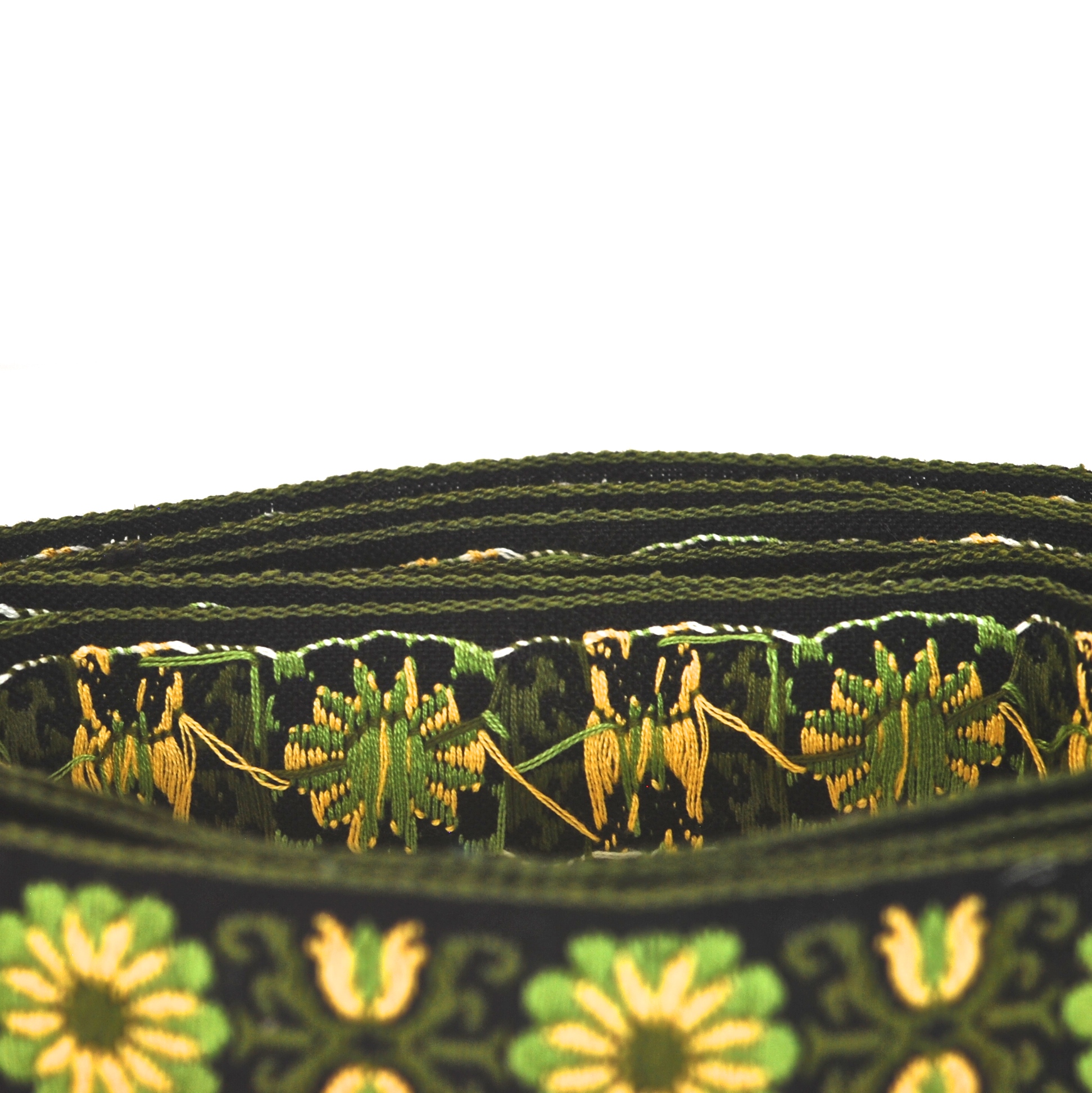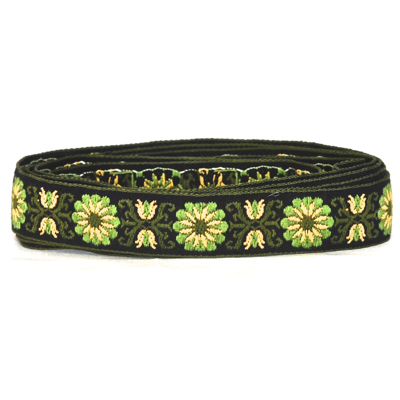 Three Yards Of Embroidered Dark Green Floral Themed Vintage Trim