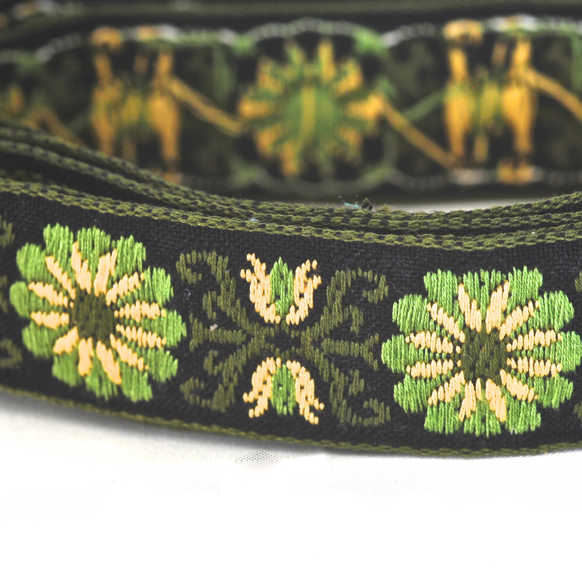 Three Yards Of Embroidered Dark Green Floral Themed Vintage Trim quantity