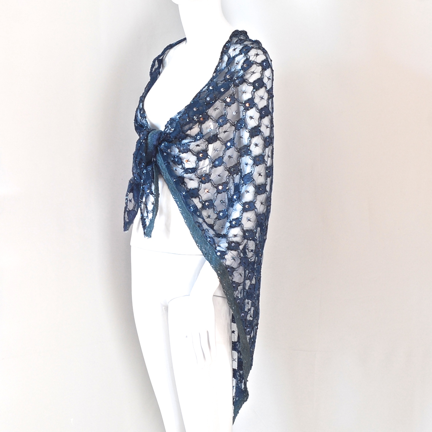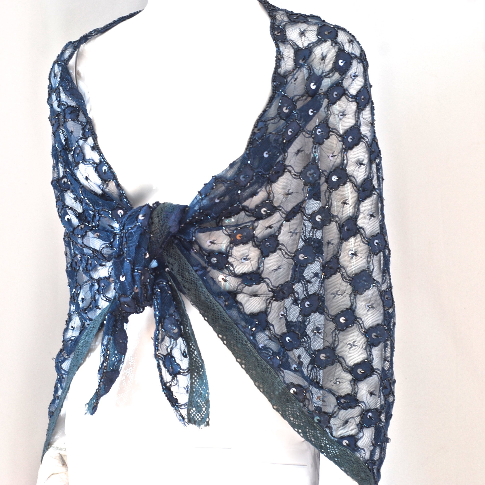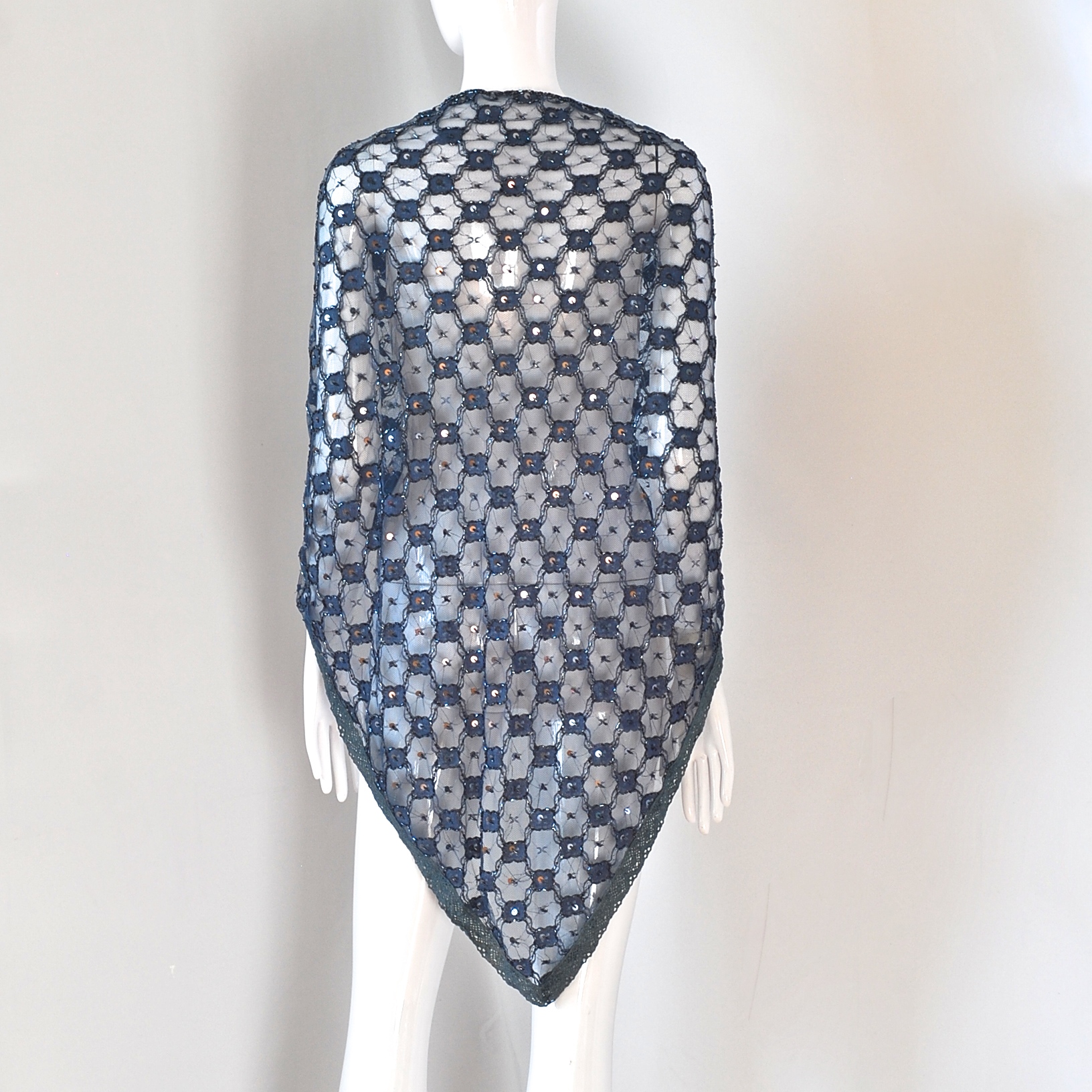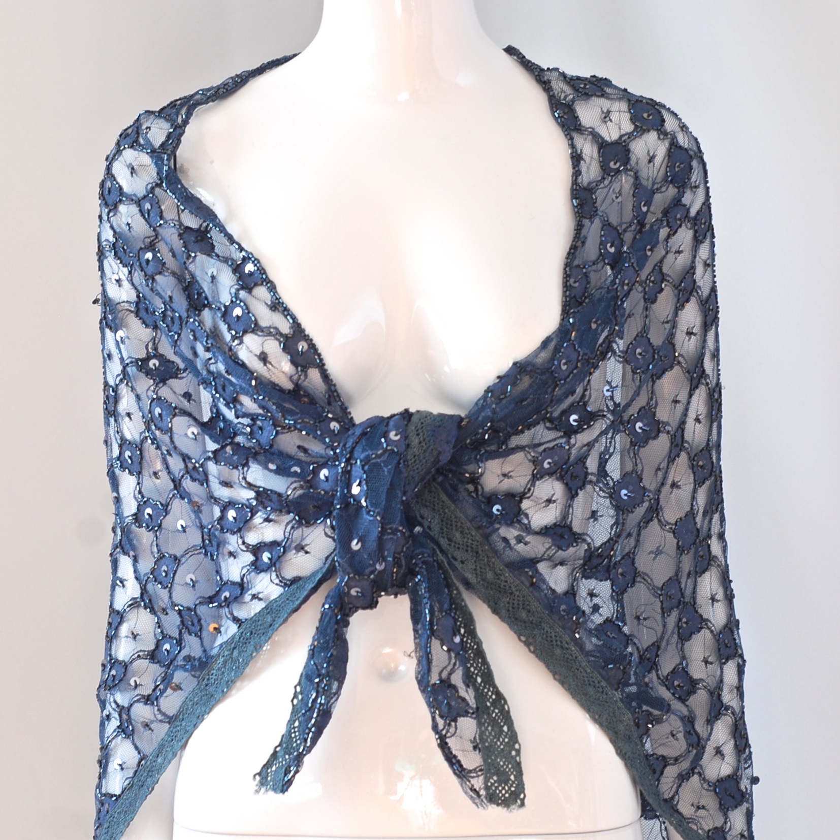 Vintage Shawl Embellished With Lace, Sequins & Needlework On Net quantity