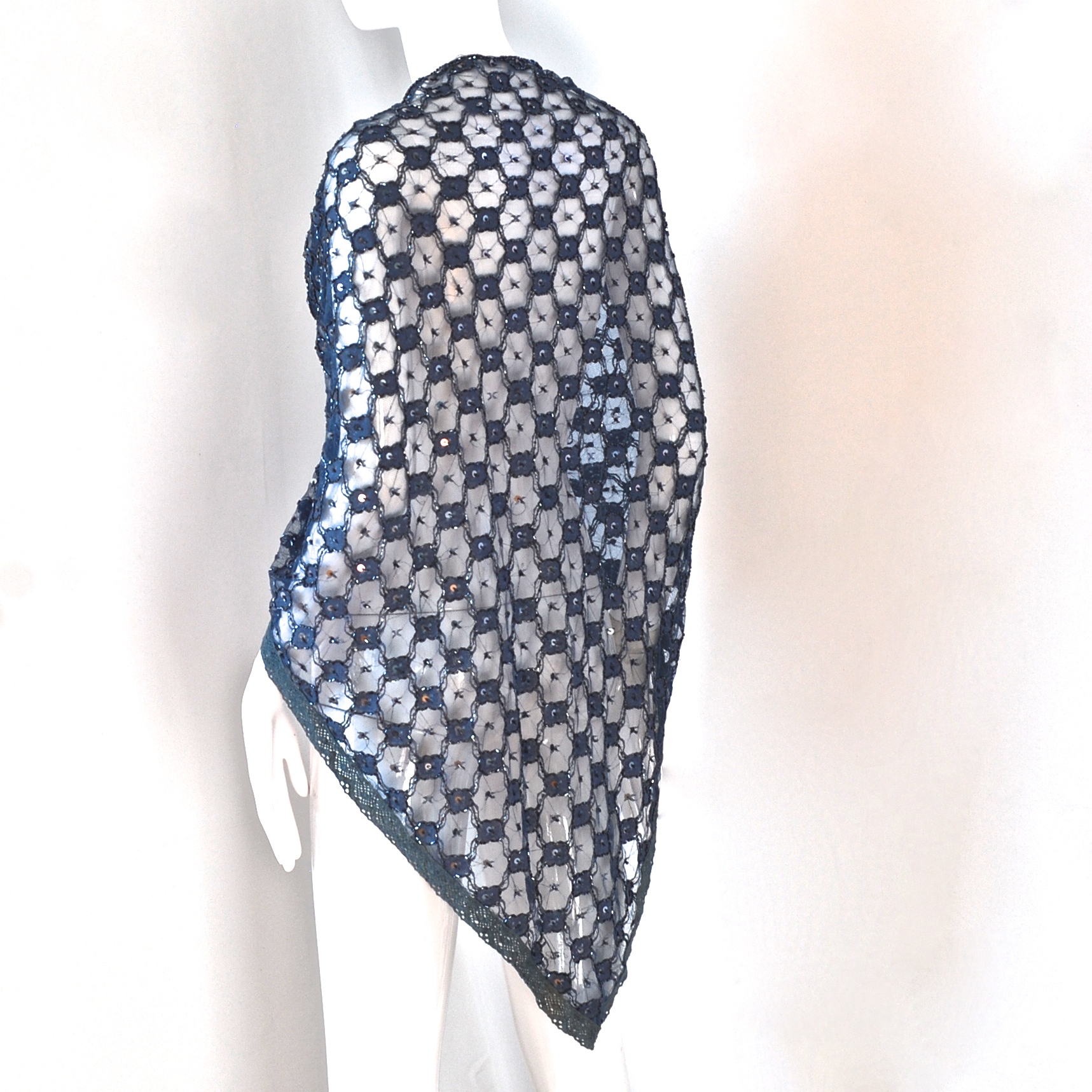 Vintage Shawl Embellished With Lace, Sequins & Needlework On Net