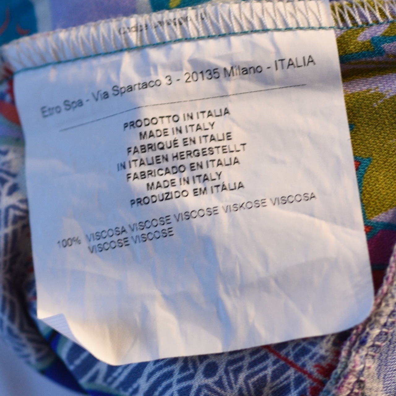 Etro slinky dress in a bright floral pattern with gathering at the waist. It is made of 100% viscose. The fabric is somewhat stretchy. It measures Shoulder to shoulder 14″ Bust 32-34″ Waist 26-28″ Hips 34″ Length 41″ Sleeves 18″. Size 44 on label. Made in Italy.