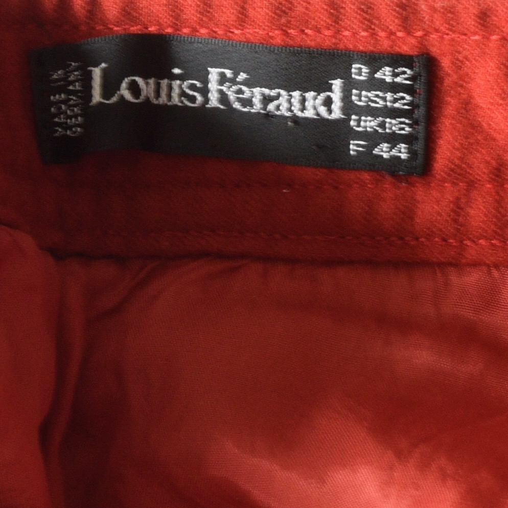 This Louis Feraud skirt is a bit difficult to date because the wool felt skirts go back to the 1950’s. It is quite different compared to the Louis Feraud styles of the 1980s and 1990s. It has signature buttons, and is lined. It measures Waist 27″ Hips 36″ Length 28.5″. Made in Germany. Circa 1960s – 1970s. It is in good condition.