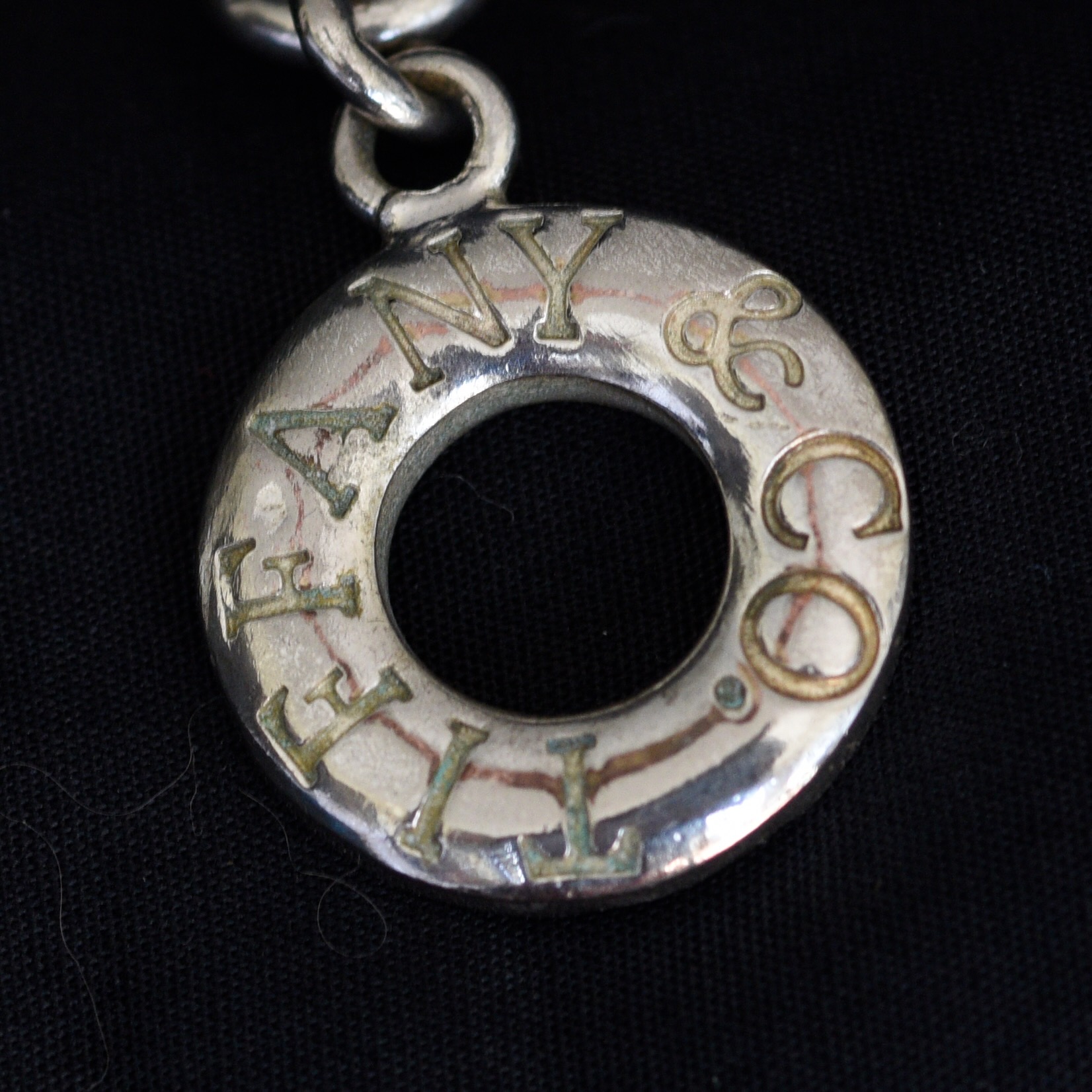 This Tiffany toggle bracelet with a Return To Tiffany heart charm is hallmarked 925 in two places. It has been sent for authentication and has been certified as authentic. It has fairly heavy welded links, and the toggle is engraved. It measures 7.5″ long end to end. The wrist chain portion measures 6.5″. It is in good condition. Does not have original box or packaging.