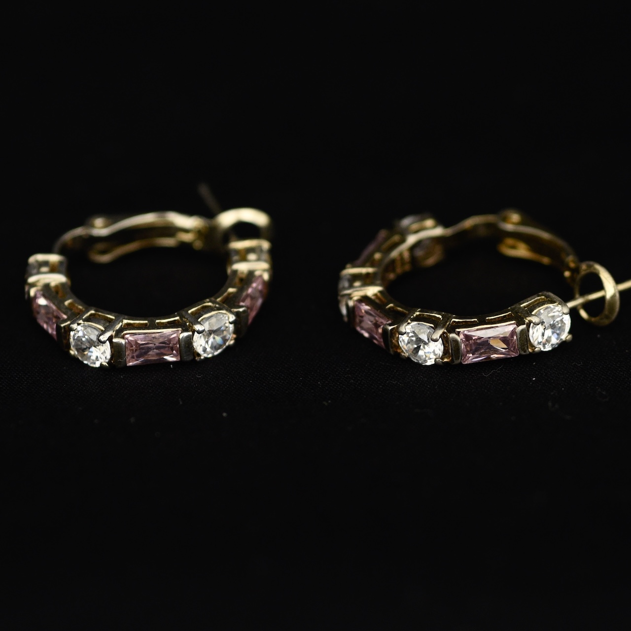 Sterling Silver Small Hoop Earrings With Pink & Clear Stones – 925