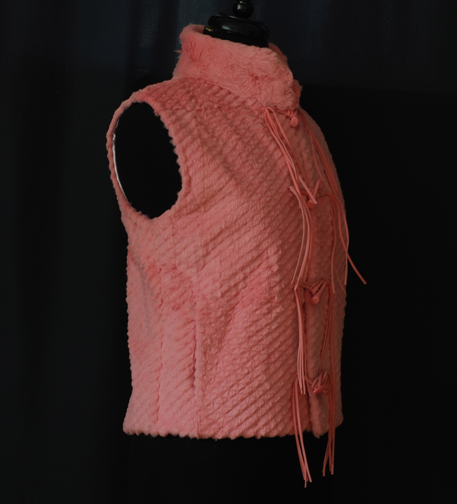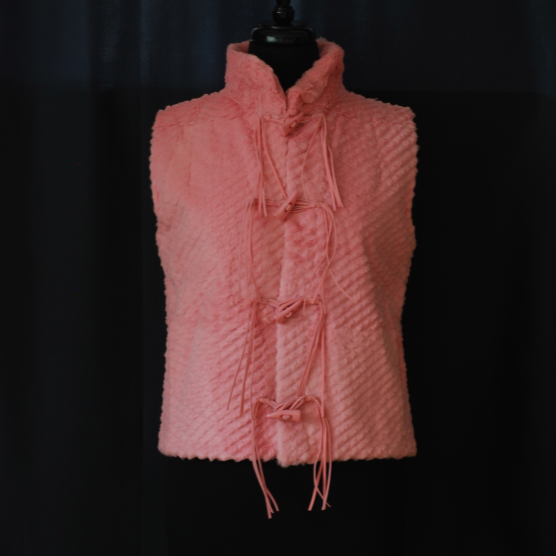 Karina Paris Pink Rabbit Fur Sleeveless Jacket With Tasseled Buttons quantity
