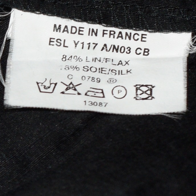 This skirt is made of 84% flax 18% silk. Size 44 on label It measures Waist 30″ Hips 40″ Length 30″. It is in very good condition. Made in France.