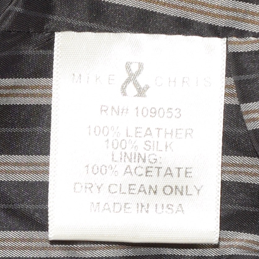 This leather vest has a silk back, and acetate lining. It has a back belt and buckle to adjust the waist. Size small on label. It measures Bust 32″ Waist 29″ Length 22″. It is in good condition. Made in USA, Circa early 2000’s.